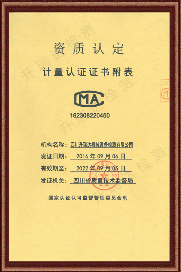 4月22日,經(jīng)四川省市場監(jiān)督管理局核準,取得房屋建筑及市政工程工地的橋(門)式起重機、塔式起重機、施工升降機等特種設(shè)備監(jiān)督檢驗和定期檢驗的綜合類甲級檢驗檢測資質(zhì)(核準證號:TS7151505-2024)。