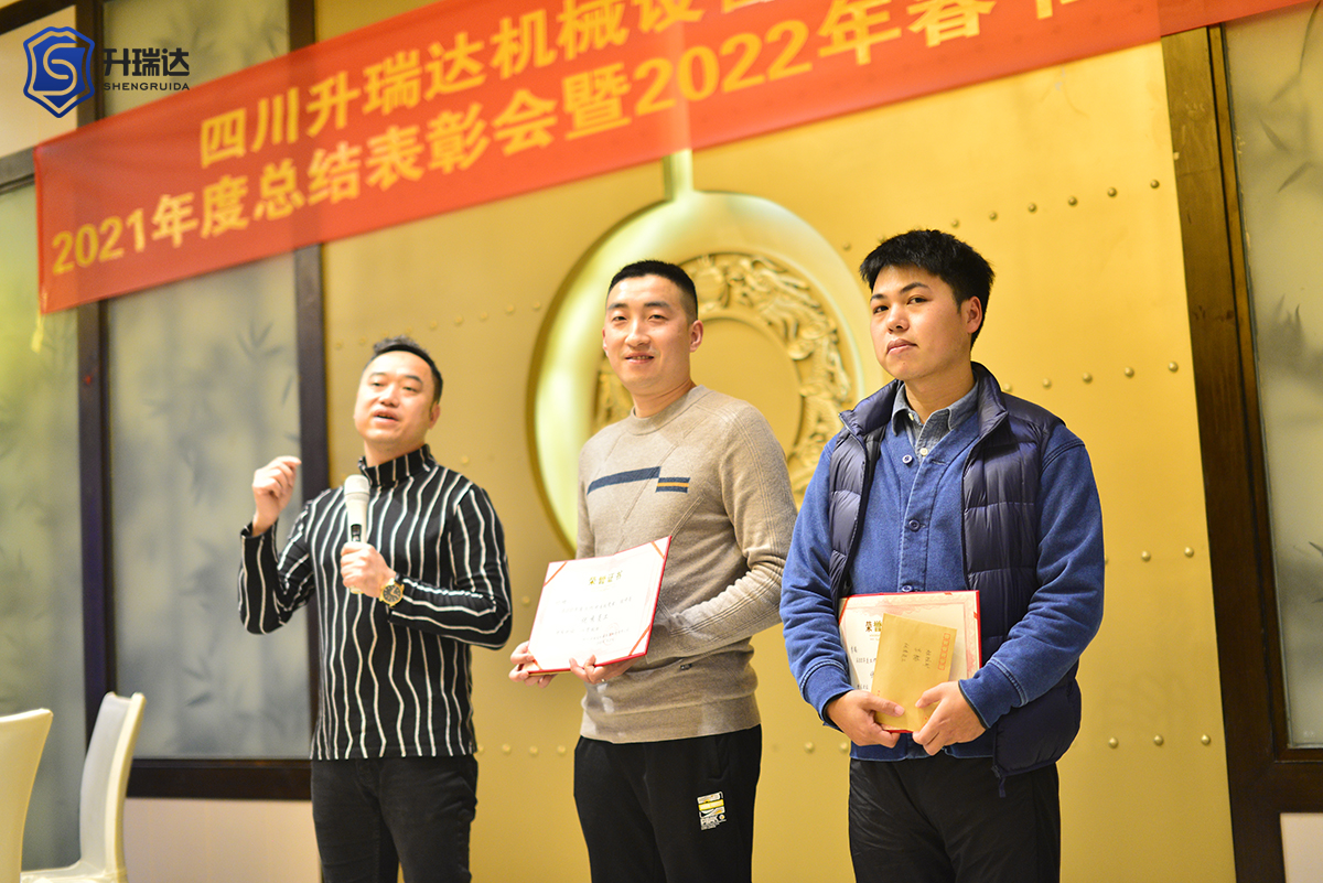 ? ? ? ? 公司的不斷發(fā)展離不開(kāi)優(yōu)秀的員工,在本次團(tuán)拜會(huì)上,升瑞達(dá)公司對(duì)2021年度優(yōu)秀員工進(jìn)行了表彰,并頒發(fā)證書以資獎(jiǎng)勵(lì);獲獎(jiǎng)員工也進(jìn)行了發(fā)言,表示在新的一年里將不斷提升自己,為公司發(fā)展、自身發(fā)展而努力。隨著各個(gè)獎(jiǎng)項(xiàng)的頒發(fā)不斷掀起年會(huì)的高潮,各級(jí)領(lǐng)導(dǎo)與員工親情互動(dòng)以及激動(dòng)人心的頒獎(jiǎng)活動(dòng),讓吶喊聲、掌聲、歡呼聲一直在會(huì)場(chǎng)上蕩漾。